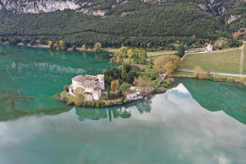 Castel Toblino è il più celebre dei castelli del Trentino e deve la sua fama alla singolare posizione e al bellissimo ambiente che lo circonda. Esso nacque su uno sperone roccioso staccatosi dalla montagna sovrastante e finito nel lago. Con il passare degli anni il livello delle acque si abbassò ed ora si presenta a noi come penisola. La prima costruzione sorta fu un piccolo tempio dedicato al culto delle fata che risiedevano sull’isola: una piccola lapide nel porticato del castello ne attesta la storicità. Successivamente venne eretta una fortificazione con funzione militare – strategica, per la presenza dell’importante nodo stradale che collega Trento alle valli del Sarca. Ciò che però ammiriamo noi oggi è frutto della riedificazione voluta da Bernardo Clesio nel XVI secolo: il maniero si trasformò in residenza molto apprezzata dai Principi vescovi di Trento e in particolare dai Madruzzo. Esso diventò una delle fortificazioni lacustri più note non solo della Valle dei Laghi ma dell’intera regione.